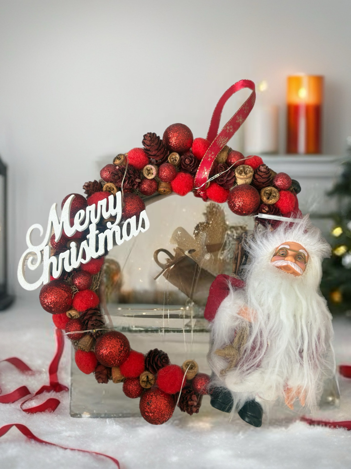Karácsonyi ajtódísz világittással
