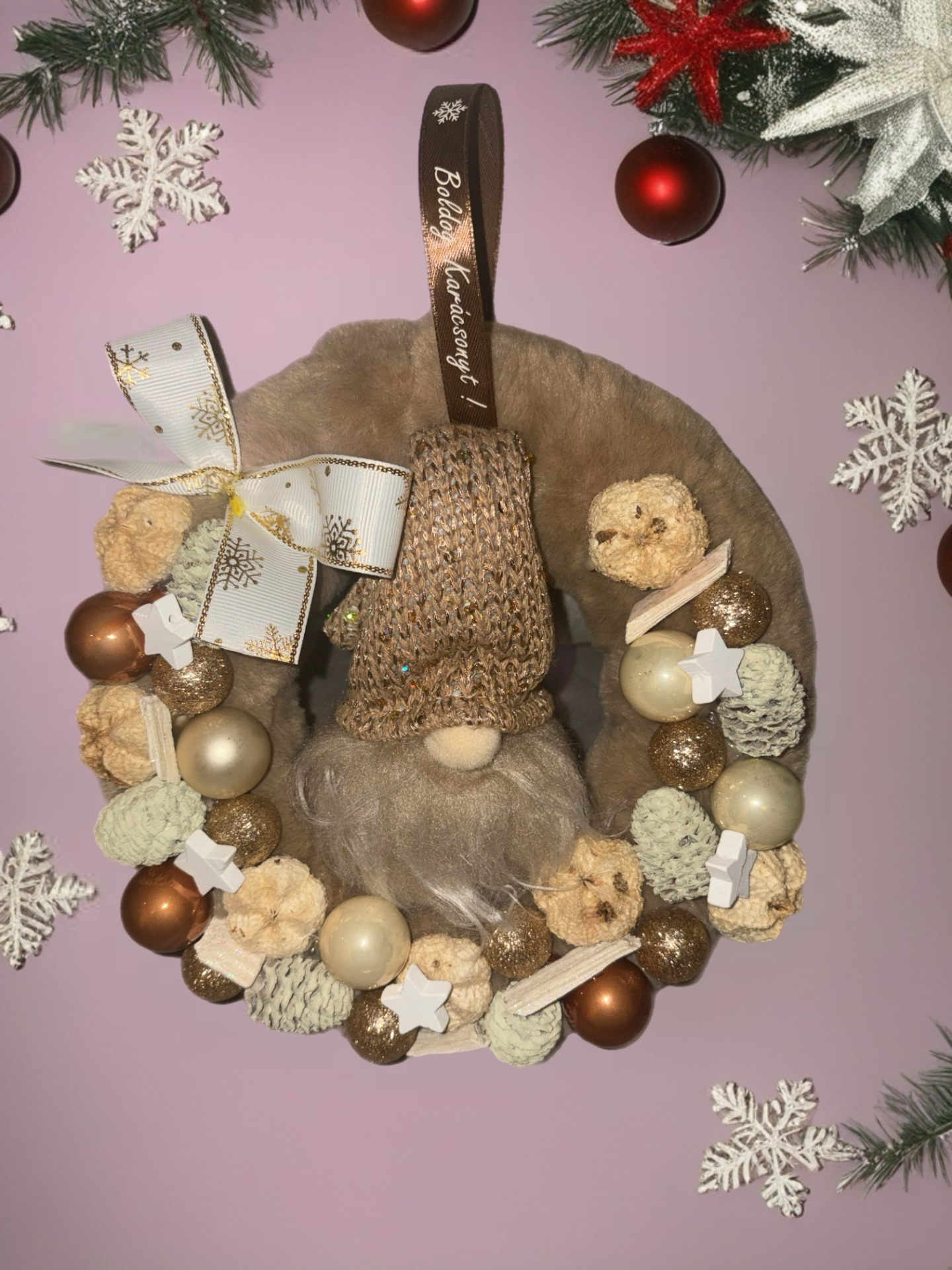 Az ajtódiszen található manó világit.