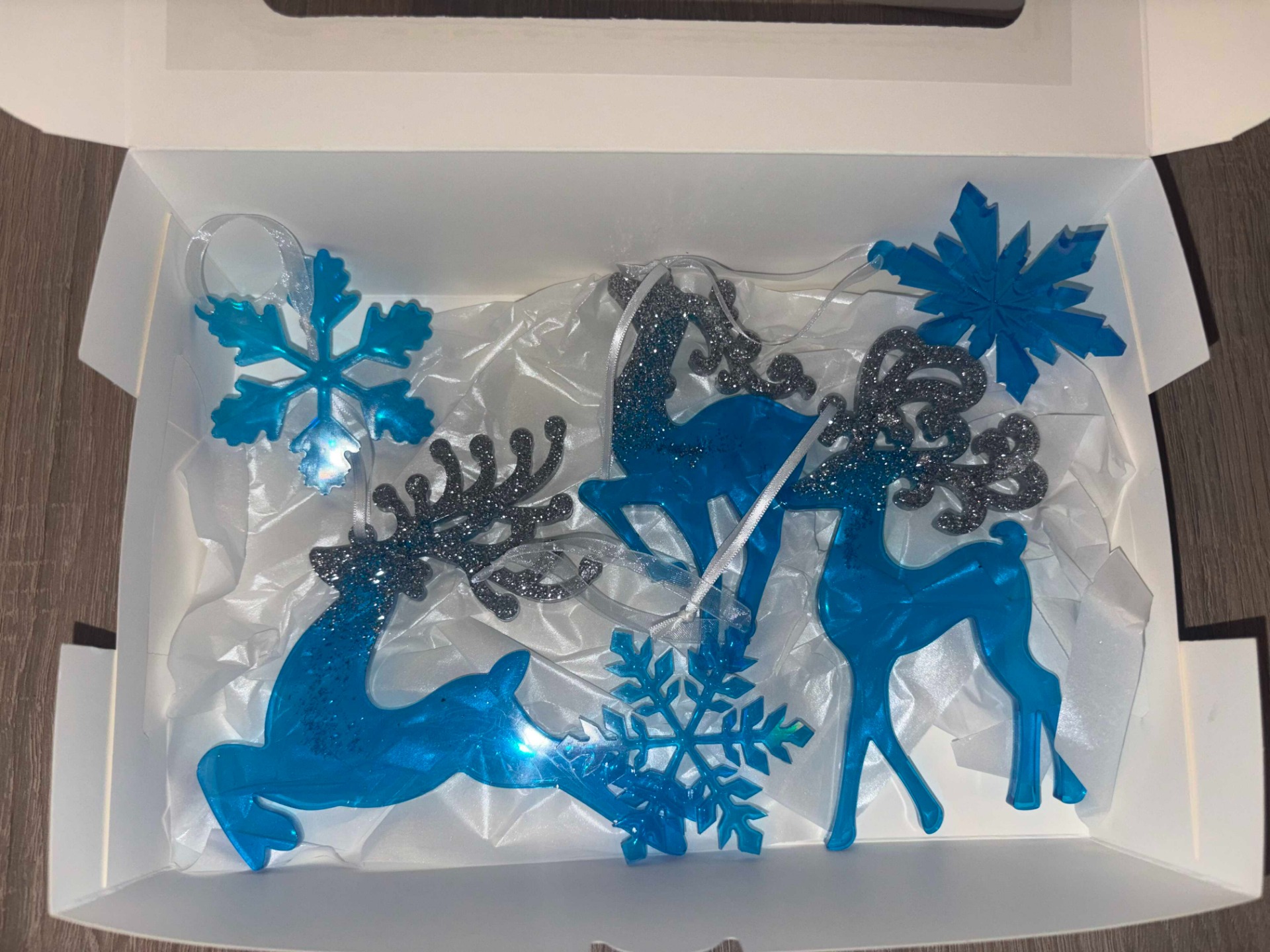 Weihnachtsbaumschmuckbox aus Epoxidharz.